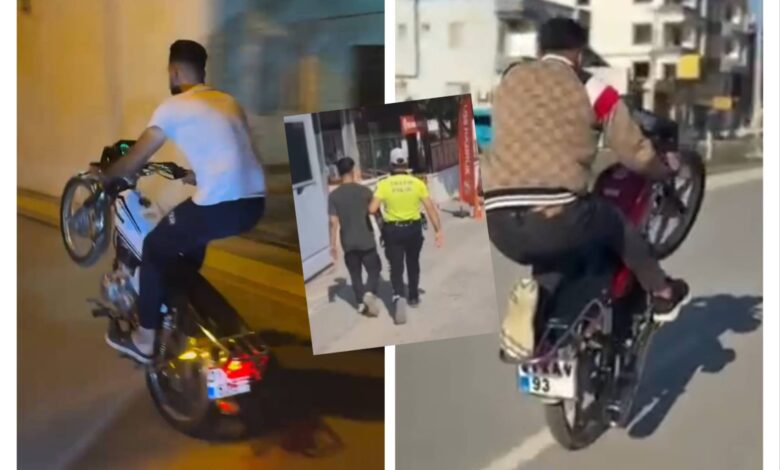 Hatay Emniyet Müdürlüğü ekiplerince Arsuz ilçesi Gözcüler Mahallesi Sakarya Caddesi üzerinde akrobatik hareketler yaptığı belirlenen 31… plakalı motosiklet sürücüsü K.D.’ye 2918 sayılı Karayolları Trafik Kanunu’nun ilgili maddeleri gereğince toplam 22.687 TL idari para cezası uygulandı.