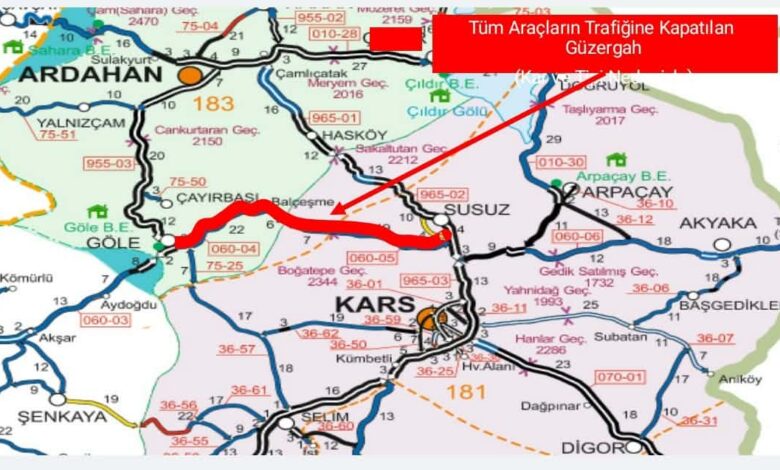Susuz-Boğatepe-Göle Devlet Yolu Tüm Araç Trafiğine Kapatıldı