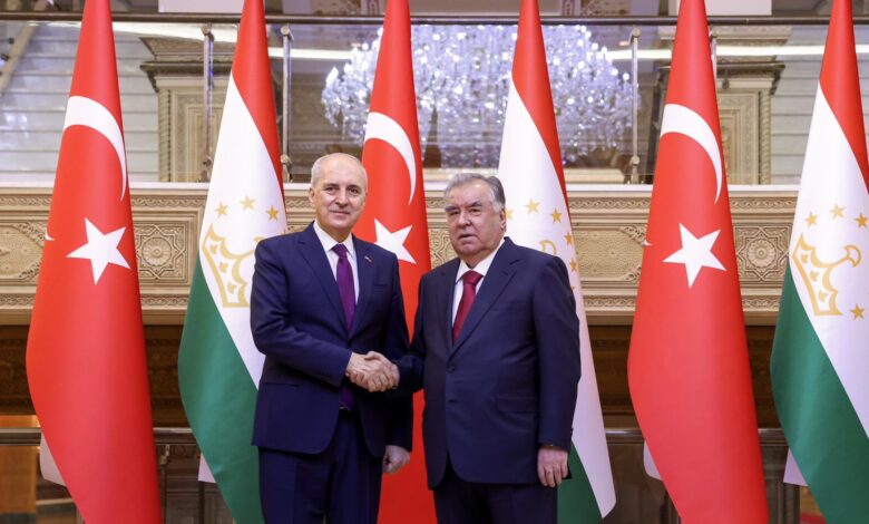 TBMM Başkanı Numan Kurtulmuş, resmi ziyaret için bulunduğu Tacikistan’ın başkenti Duşanbe’de Tacikistan Cumhurbaşkanı İmamali Rahman tarafından kabul edildi. Görüşmede, Türkiye’den Tacikistan’a Meclis Başkanı düzeyinde yapılan ilk ziyaret olmasının tarihi önemi vurgulandı ve ev sahipliği ile heyete gösterilen misafirperverlik için teşekkür edildi.